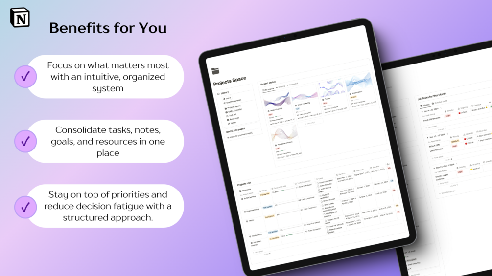 From managing tasks to tracking goals and deadlines, this all-in-one system simplifies your workflow, helping you crush your objectives and reclaim your time.