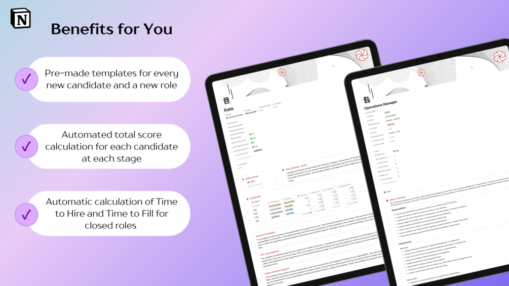 Talent Portal is a powerful yet intuitive Notion template created to make your recruitment process more efficient and less overwhelming.
